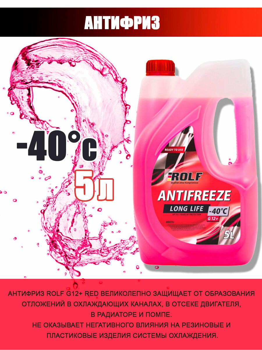 Купить Антифриз ROLF Long Life -40 G12+ Red 5 л, 1 уп.