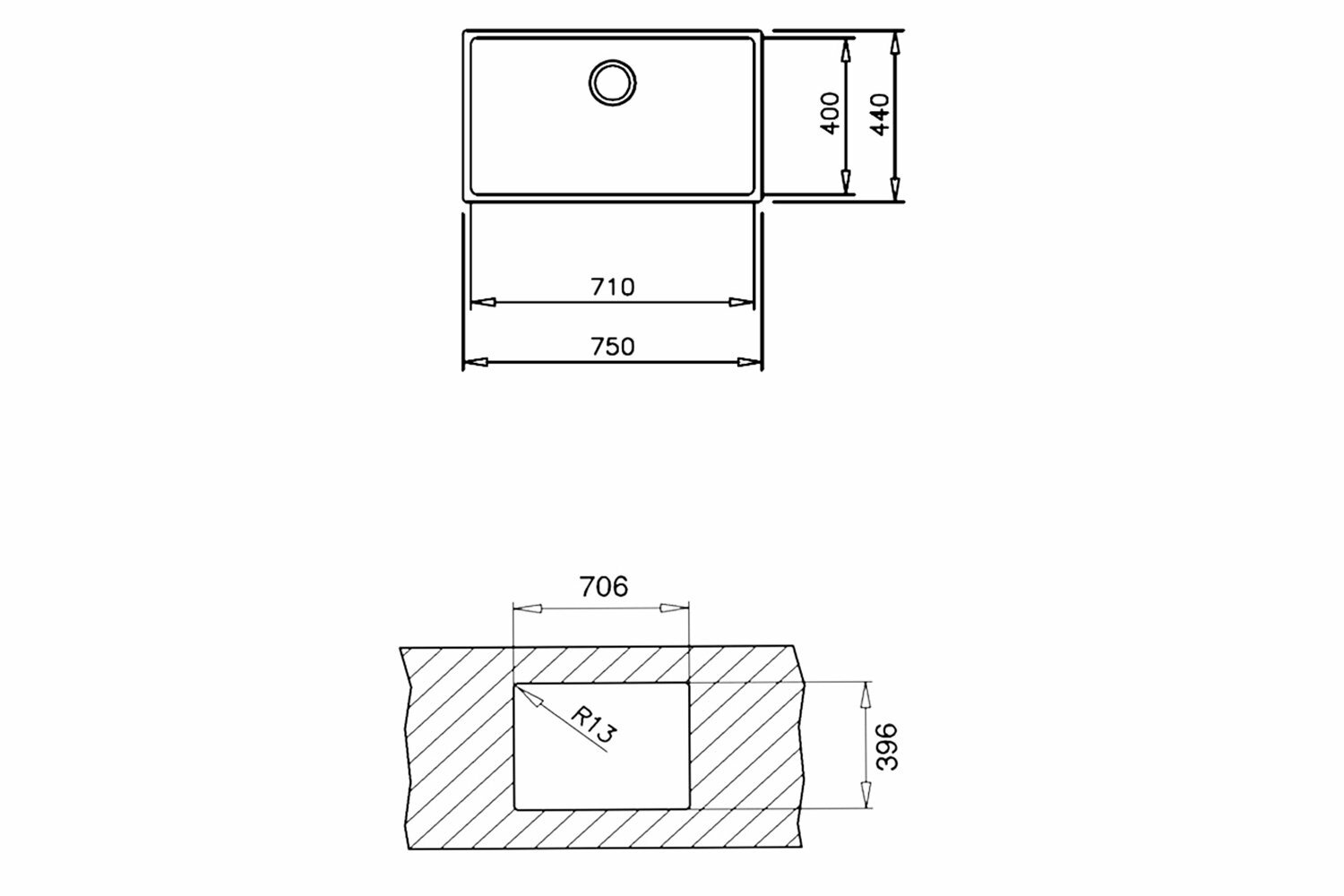 Интегрированная кухонная мойка 44 см, TEKA BE Linea RS15 71.40, полированное нержавеющая сталь