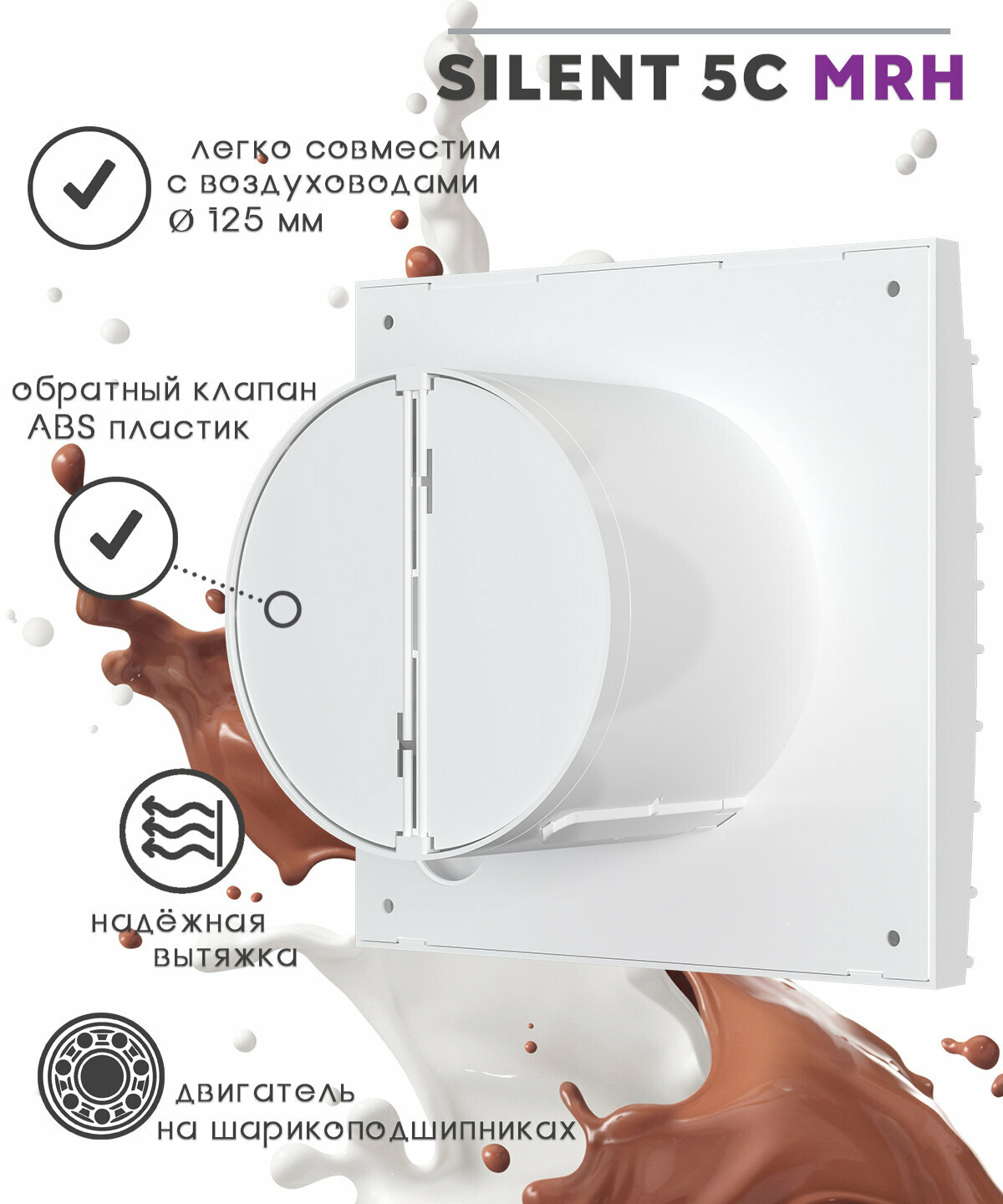 Вытяжной вентилятор 125 с обратным клапаном таймером с датчиком влажности и света SILENT 5C MRH