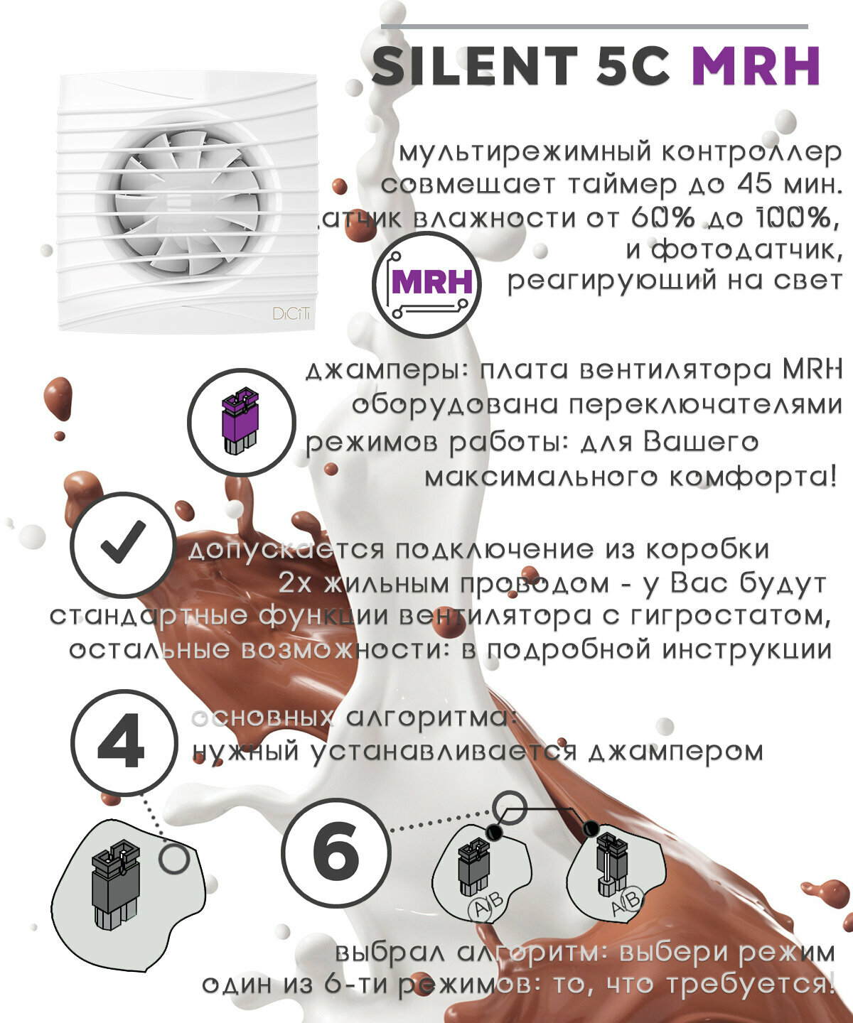Вентилятор мультифункциональный DICITI SILENT 5C MRH, D125 мм c обратным клапаном, таймером и датчиком влажности