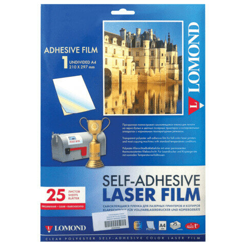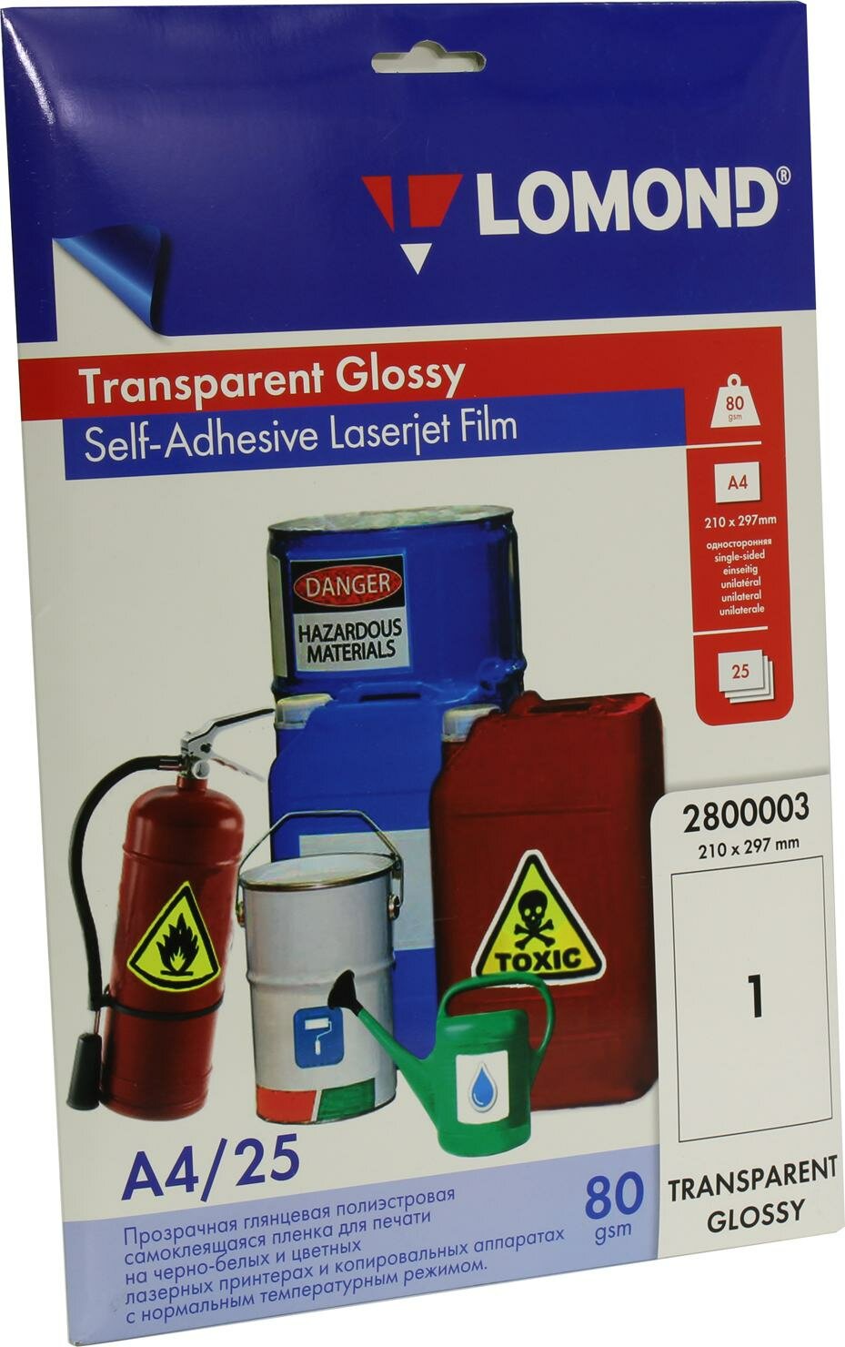 Пленка LOMOND для черно-белых и цветных лазерных принтеров, самоклеящаяся, прозрачная, 80 мкм, А4, 25 шт., 2800003