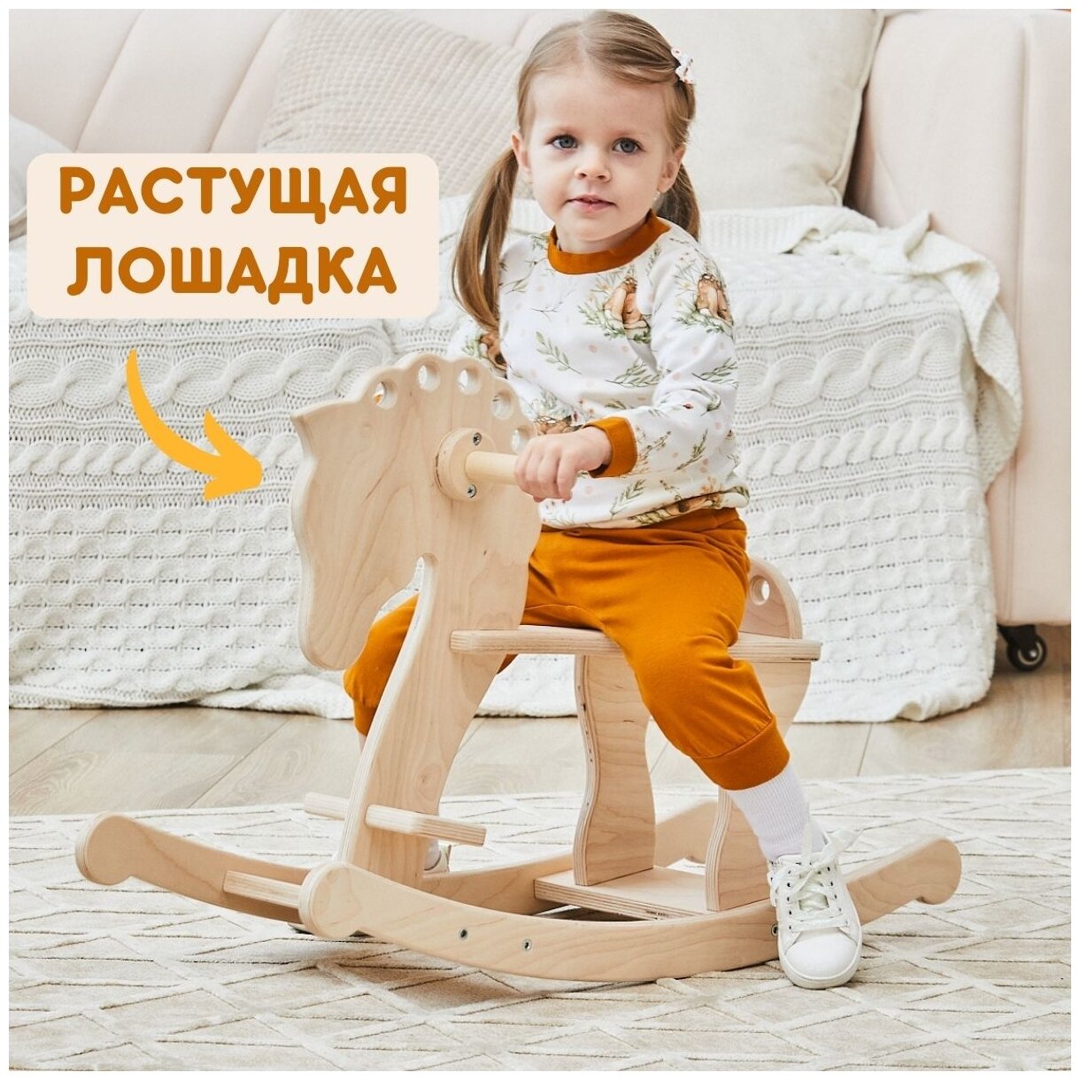 | Плюсы: | Красивая лошадка-качалка, экологичная, безопасная. |
