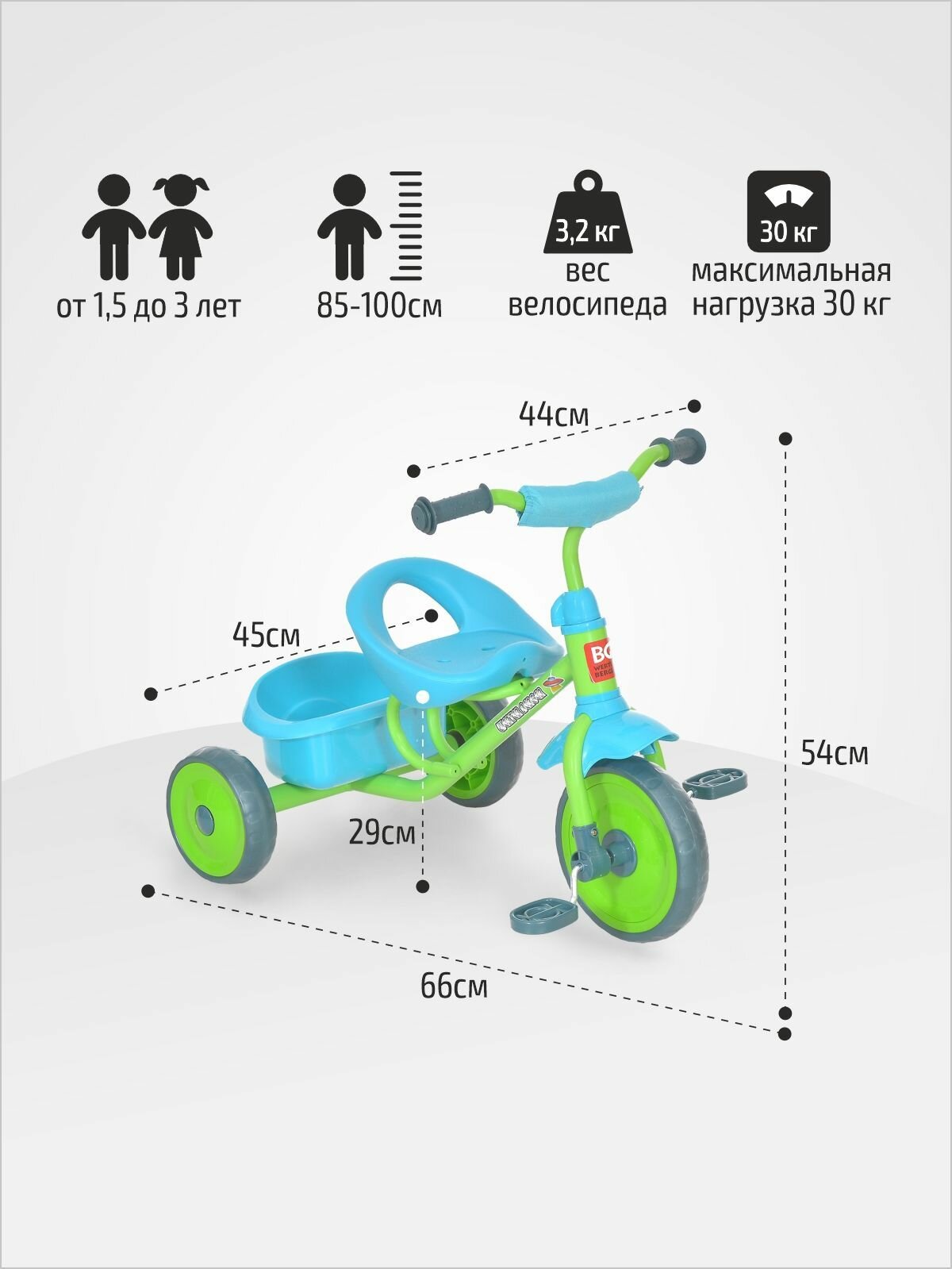 Трехколесный велосипед Werter Berger Trike XG 11214-3 зеленый интересное: