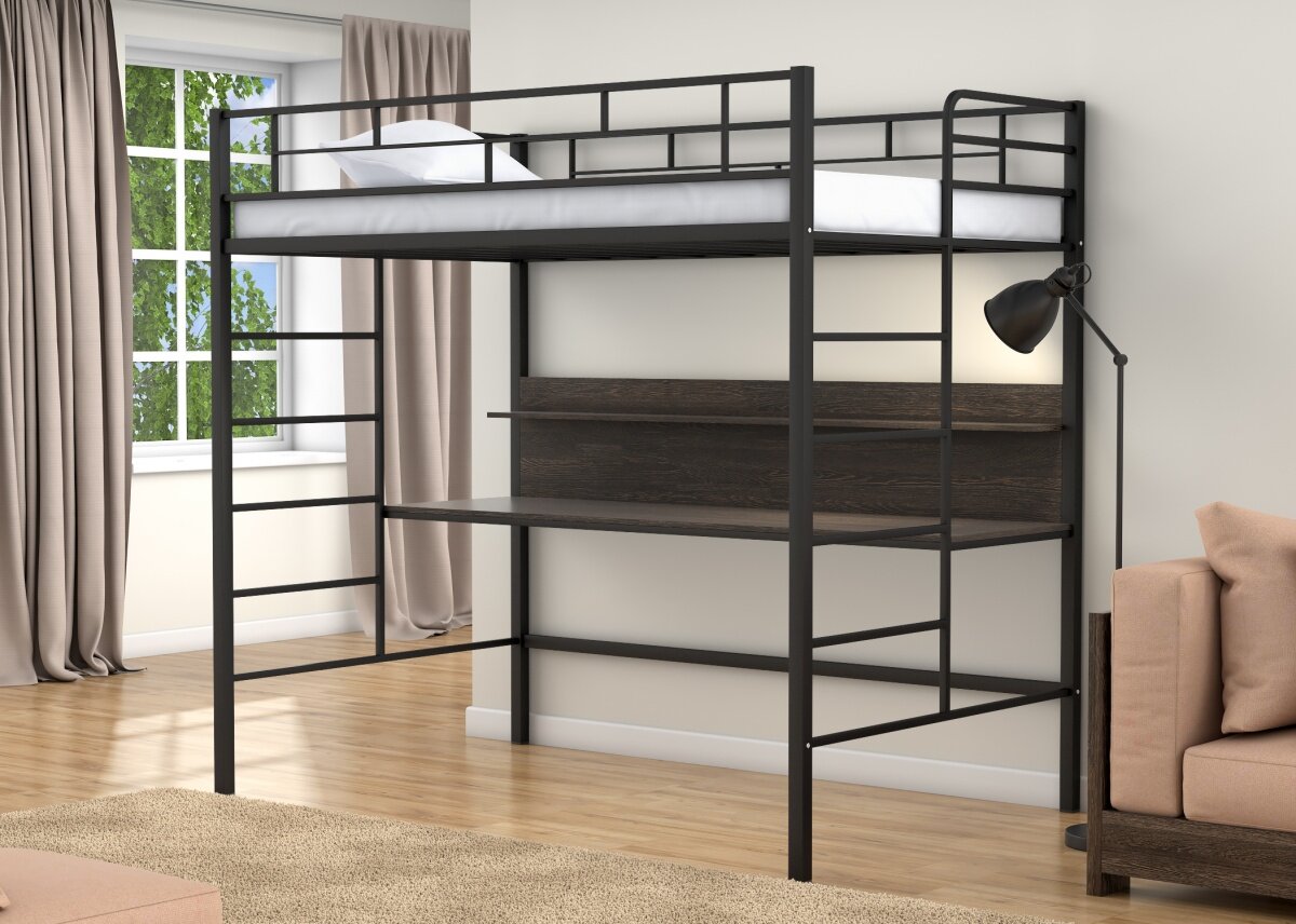 Кровать чердак "Амстердам-120" Коричневый со столом Венге/ детская/ 120х190 см/ двухъярусная кровать с рабочей зоной/ для детей и взрослых/ металлическая/ двухэтажная/ взрослая/ двуспальная