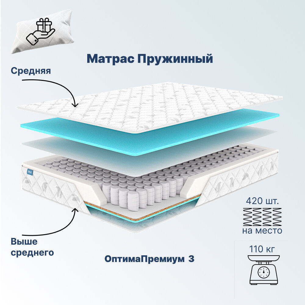 Ортопедический матрас с пружинами "Оптима Премиум 3" 160x200 см, подушки в подарок