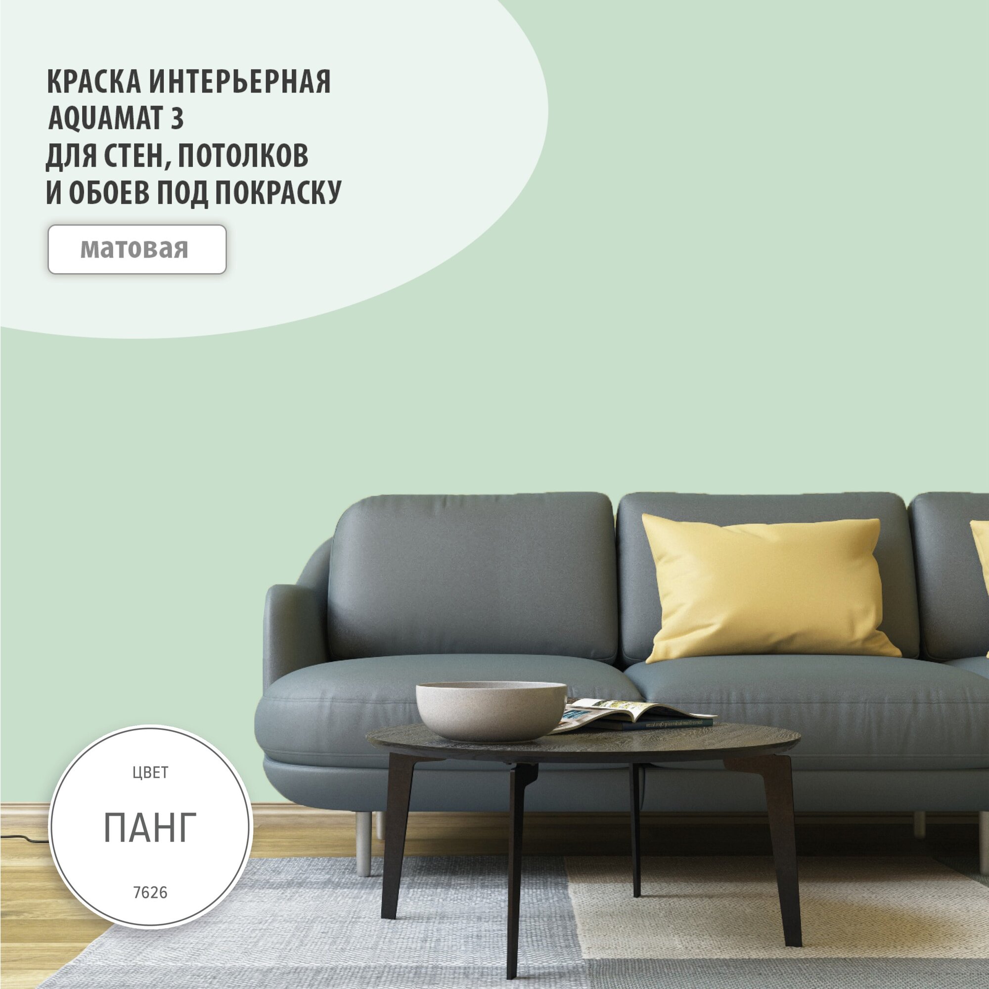 СохранитьКраска матовая для стен, потолков и обоев под окраску - AQUAMAT (Аквамат) 3, объём 2.25л, цвет Светло зеленый (Панг) оттенок 7626 интересное:
