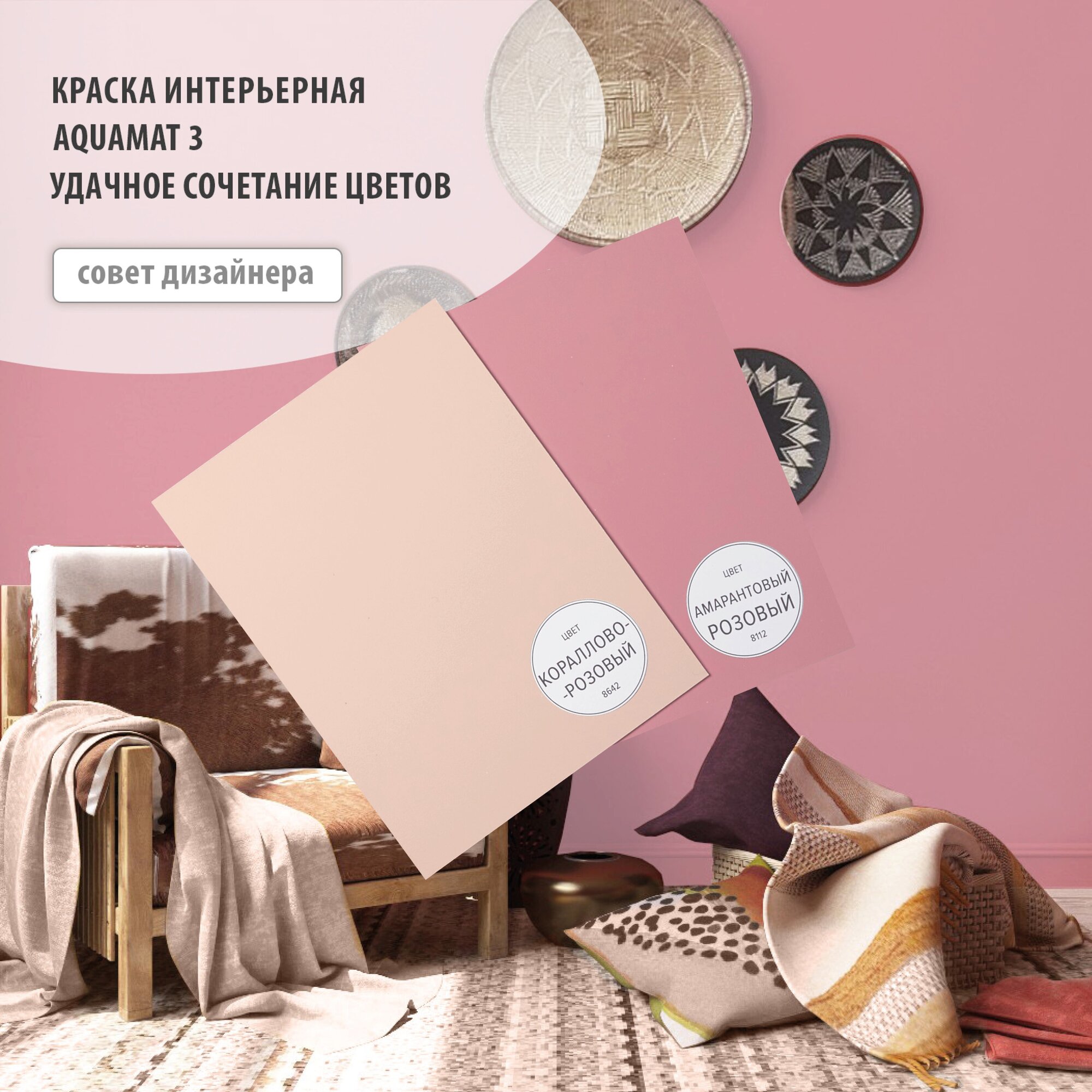 СохранитьКраска матовая для стен, потолков и обоев под окраску - AQUAMAT (Аквамат) 3, объём 2.25л, цвет Темно розовый (Амарантово розовый) оттенок 8112 интересное: