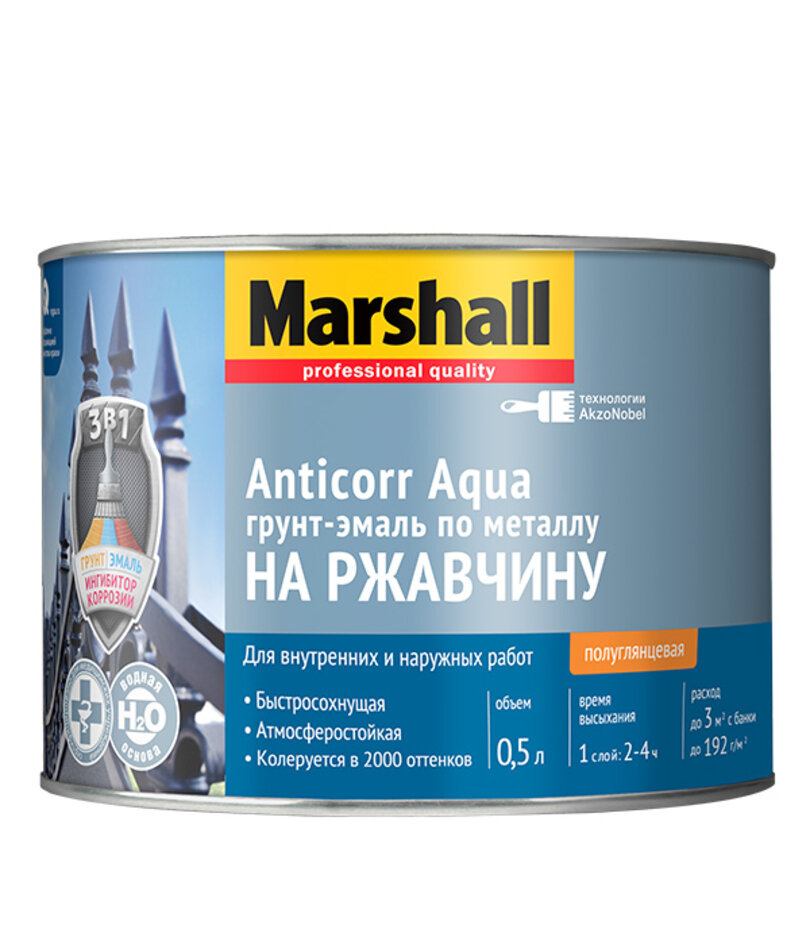 MARSHALL Anticorr aqua база BC грунт-эмаль антикоррозийная акриловая полуглянцевая (0,5л)