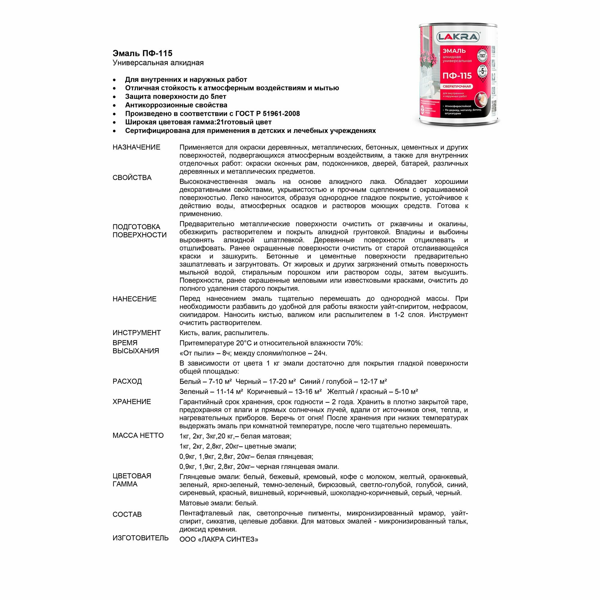 Купить Эмаль Лакра ПФ-115матовая, 2 кг, белая