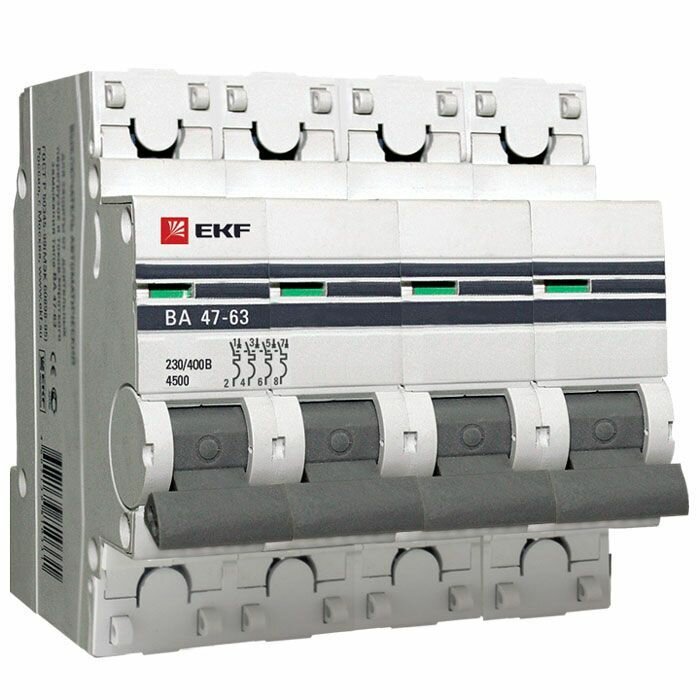 Автоматический выключатель EKF 4п C 63А 4.5кА ВА 47-63 PROxima, mcb4763-4-63C-pro