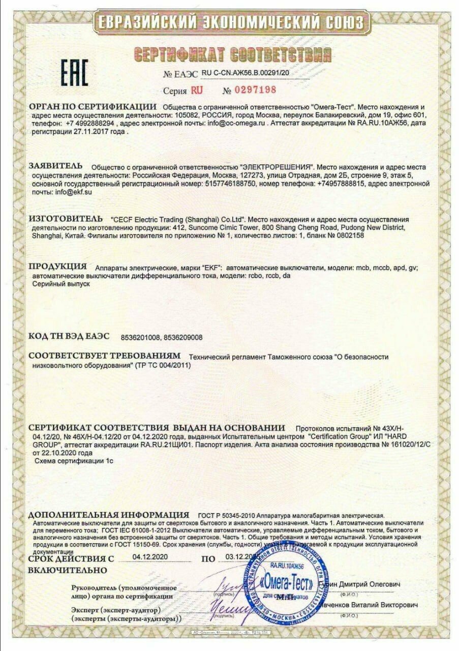 | Тип выключателя | автоматический выключатель |