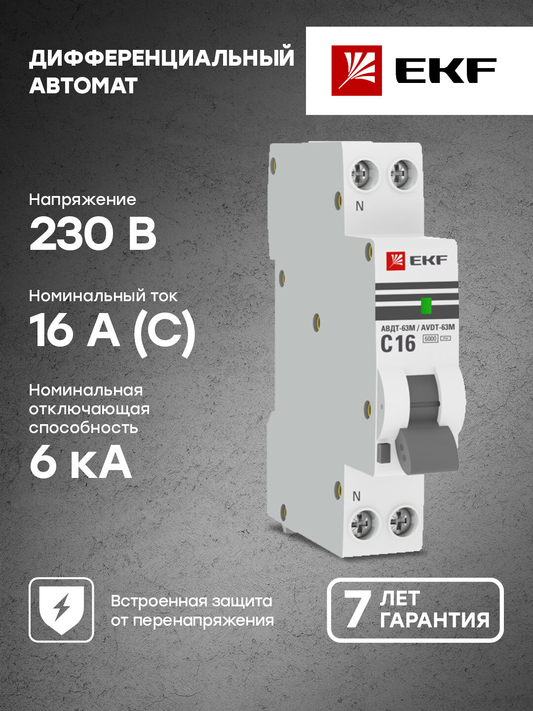 EKF PROxima АВДТ-63 Диф. Автомат (C) 16А/30мА тип АС 6кА , электронный EKF EKF PROxima АВДТ-63 Диф. Автомат (C) 16А/30мА тип АС 6кА , электронный DA63M-16-30