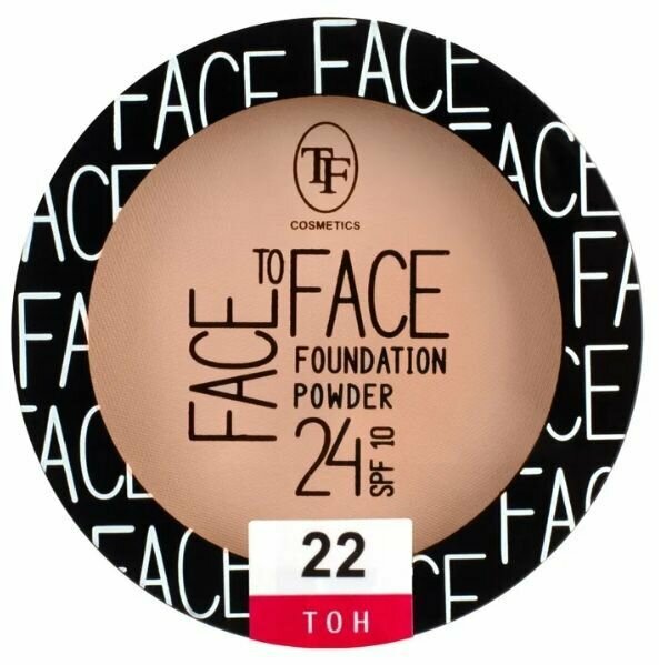 ТФ Косметикс Пудра для лица матирующая Face to Face компактная тон 22 Фарфоровый, с минеральным маслом, SPF 10, 13г / декоративная косметика