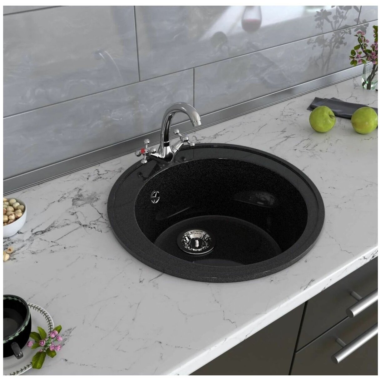 Мойка кухонная из камня ZETT lab. 30/Q4, d=475 мм, матовая, черная MARRBAXX 4843765