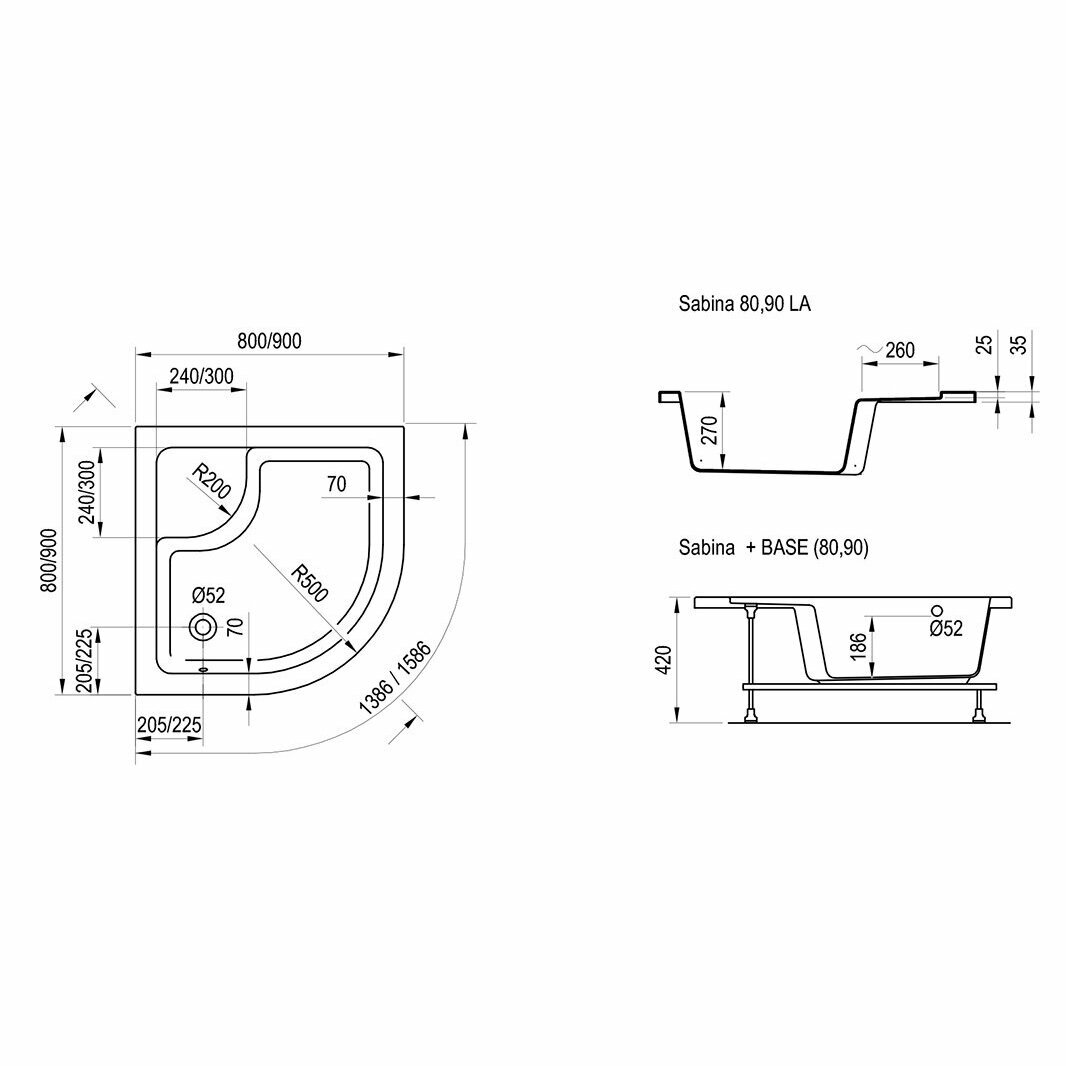 Поддон для душа Ravak Sabina-90 LA