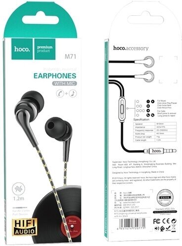 Наушники M71 Inspiring universal earphones with mic, HOCO, вакуумные с микрофоном, черные