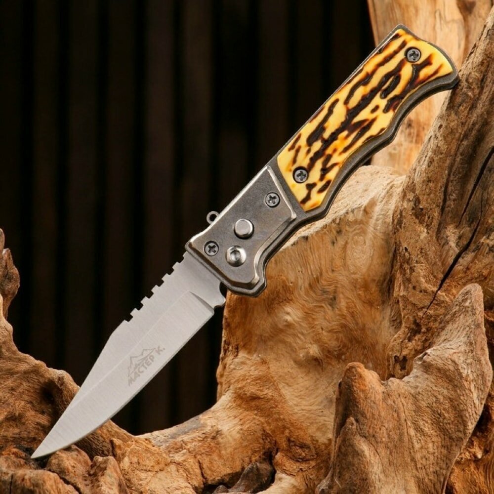 Нож выкидной Мастер К, полуавтомат, кнопка, предохранитель, лезвие 8.7 см, рукоять 11 см 1297718