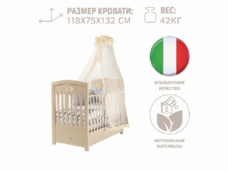 | Отзыв: | Топовая кроватка от известного производителя, тут и материалы натуральные, и краски не токсичные, а главное она крепкая, устойчивая и очень красивая. Покупкой я довольна, дочке в кроватке места более, чем достаточно, маятник установлен отличный и по качеству придраться тут не к чему, итальянцы сделали все в лучшем виде! |