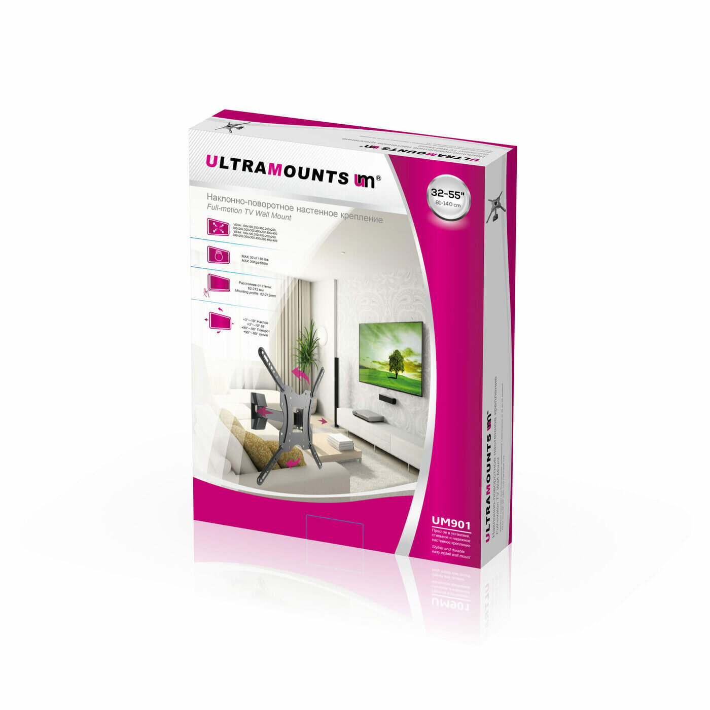 Кронштейн для телевизора Ultramounts UM901 черный 32"-55" макс.30кг настенный поворотно-выдвижной и