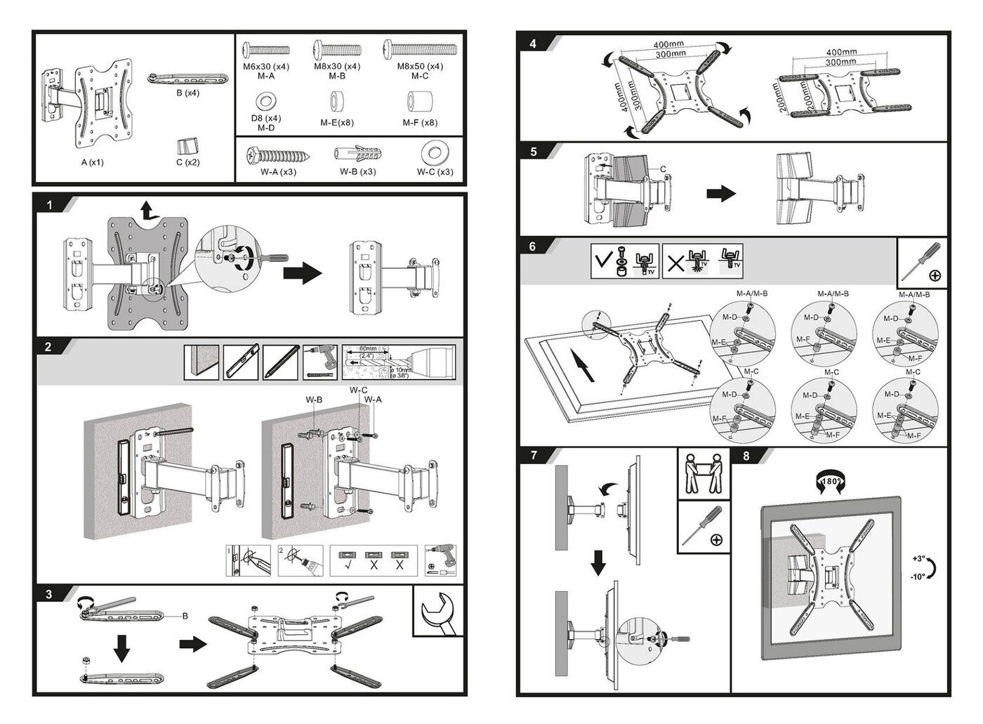 | Способ регулировки | наклон / наклон и поворот / отступ от стены / поворот |