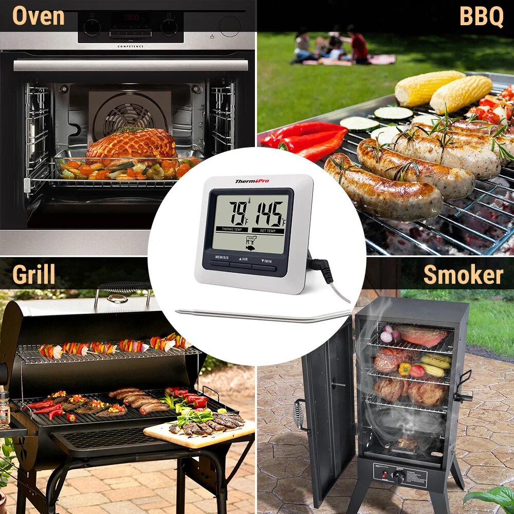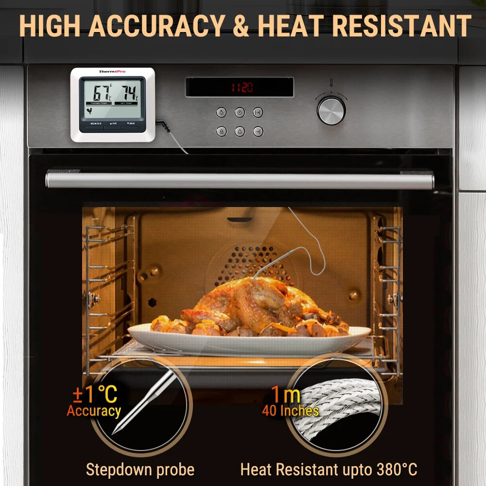 Кулинарный термометр электронный со щупом из нержавеющей стали, термометр для еды, мяса, вина, провод 1 метр / таймер кухонный