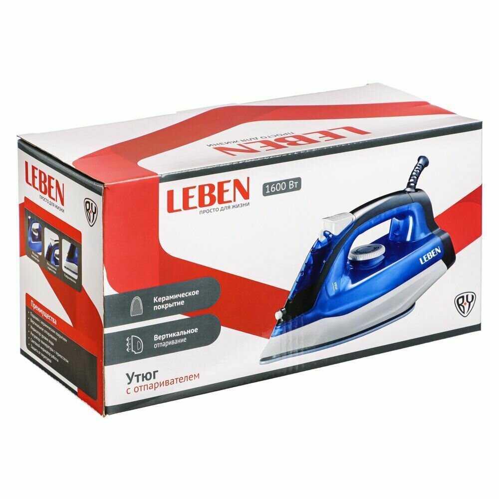 LEBEN Утюг с отпаривателем 1600 Вт, подошва - керамическое покрытие, синий