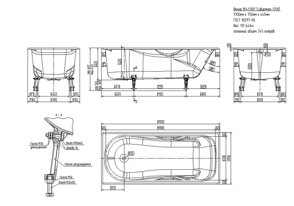 Чугунная ванна Универсал Сибирячка 170х75 интересное: