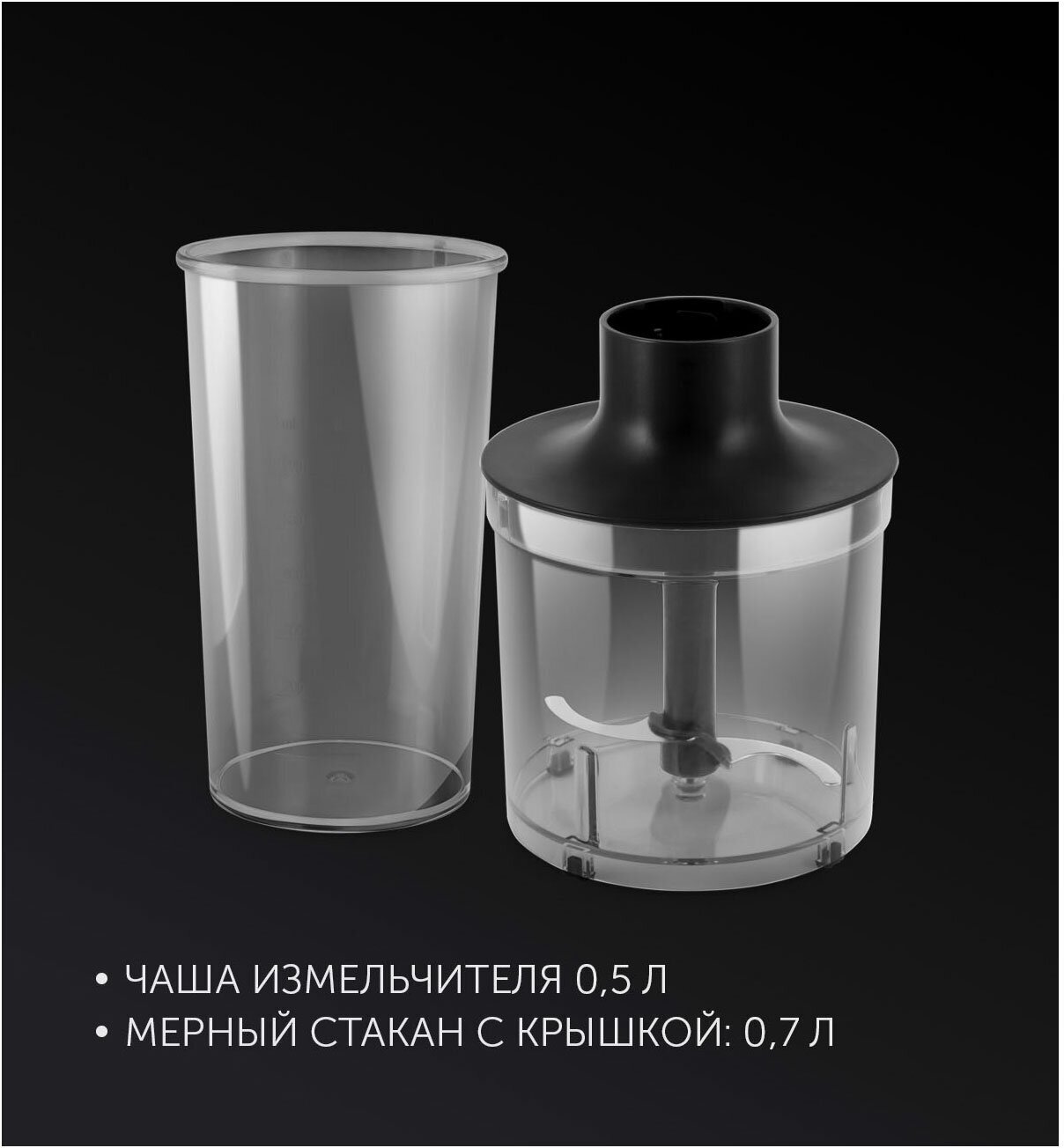 Блендер погружной POLARIS PHB 0848, 800Вт, 2 режима, измельчитель, венчик, стакан, черный