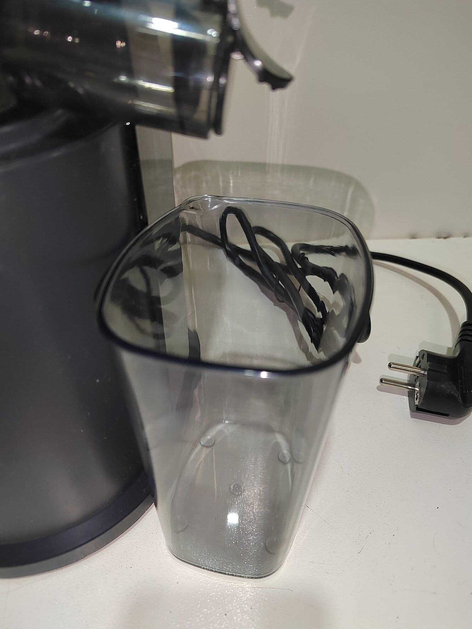 | Минусы: | Верх крышки после поворота на закрытие удерживается на корпусе соковыжималки за счёт маленького язычка, который служит к тому же включателем концевика. При правильной сборке чаши и крышки соковыжималка будет работать сразу.