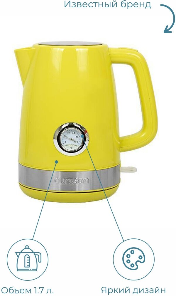 Чайник электрический OURSSON EK1716P/GA, желтый