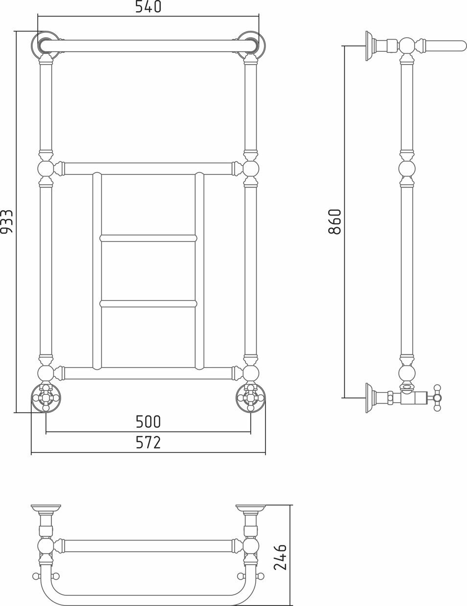 Полотенцесушитель водяной Сунержа 00-0282-8650 Ренессанс Полотенцесушитель водяной 860х500 мм, без покрытия