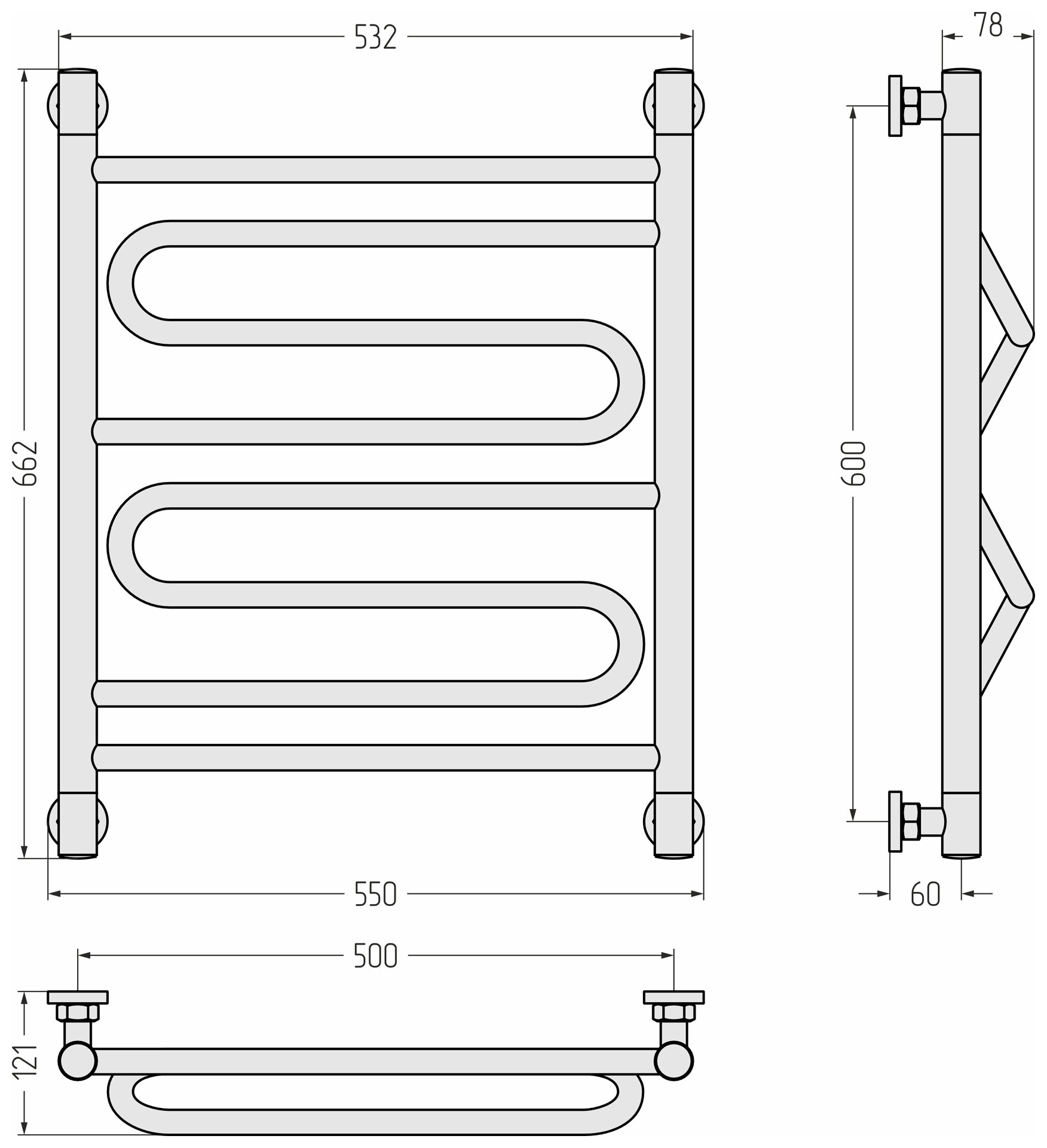 Полотенцесушитель водяной Сунержа Элегия+ 600х500 Без покрытия