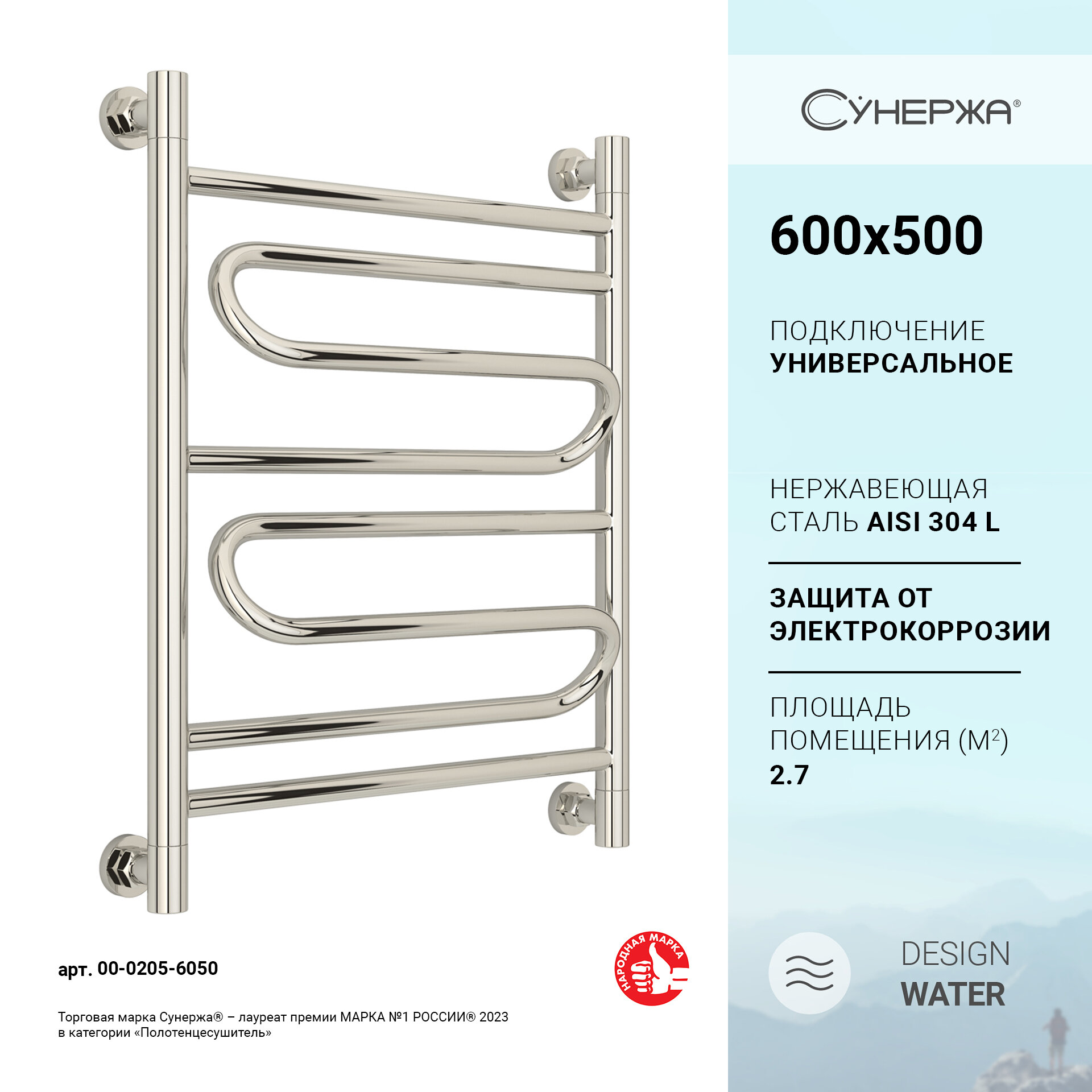 Водяной полотенцесушитель Сунержа Элегия+ 600x500