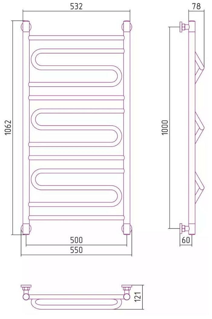 Полотенцесушитель водяной ЭЛЕГИЯ+ 1000х500
