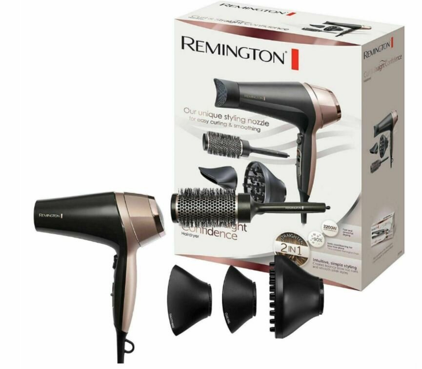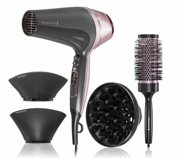 Фен для волос Remington CURL & STRAIGHT CONFIDENCE D5706, 2200 Вт, ионизация, решетка с керамическим покрытием, холодный воздух, розовый/черный