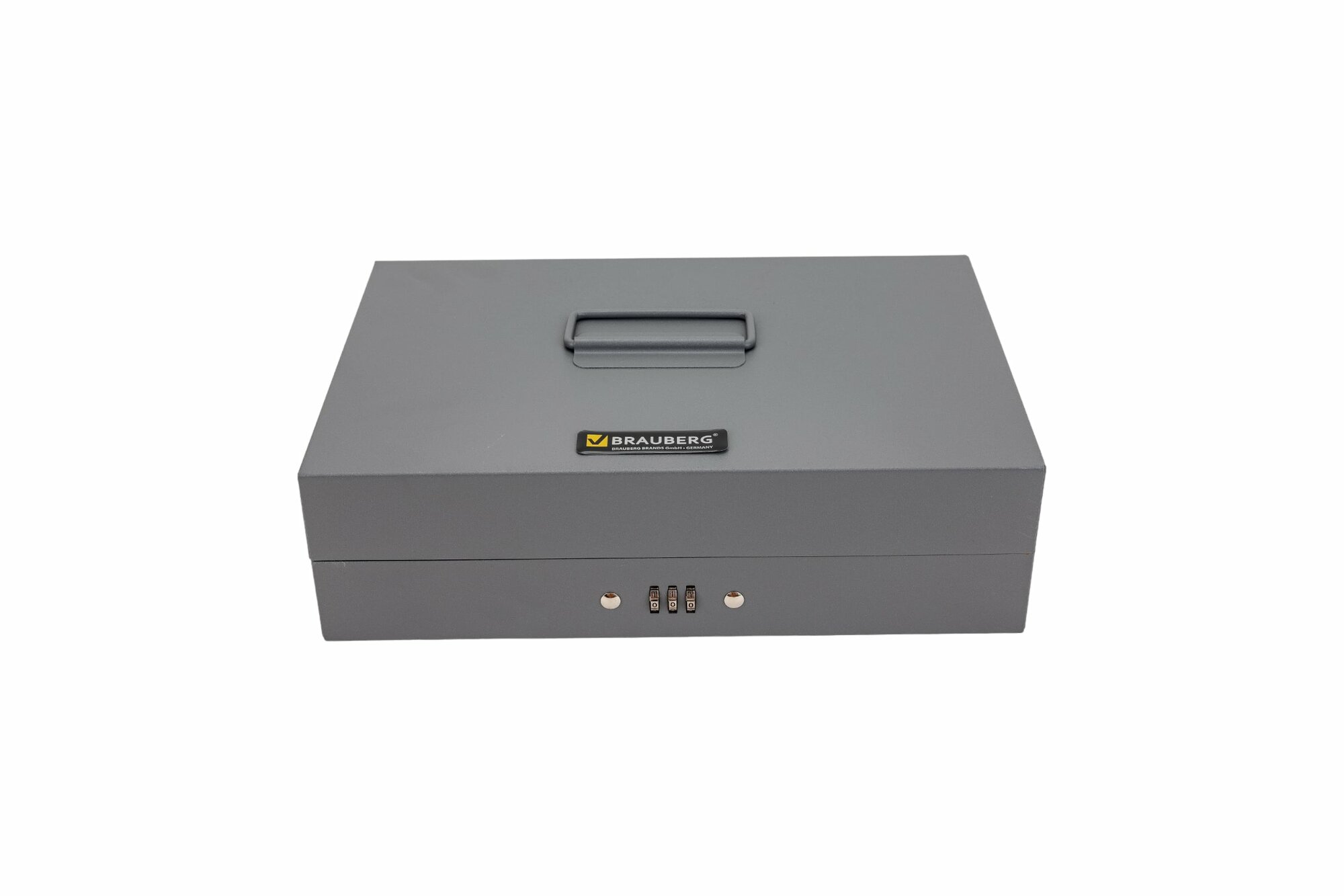 Ящик для денег, ценностей, документов, печатей BRAUBERG, 80?195?290 мм, кодовый замок, темно-серый «металлик»