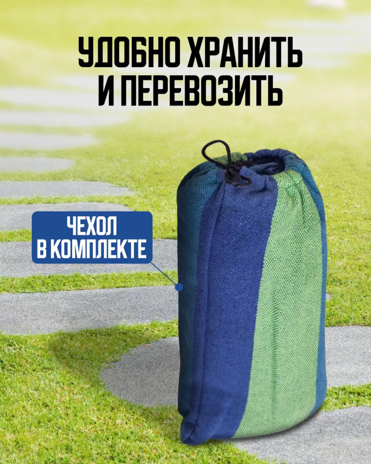 Гамак полотняный Ham-11 с чехлом для хранения и переноски, р-р 200х120 см., сине-зеленый