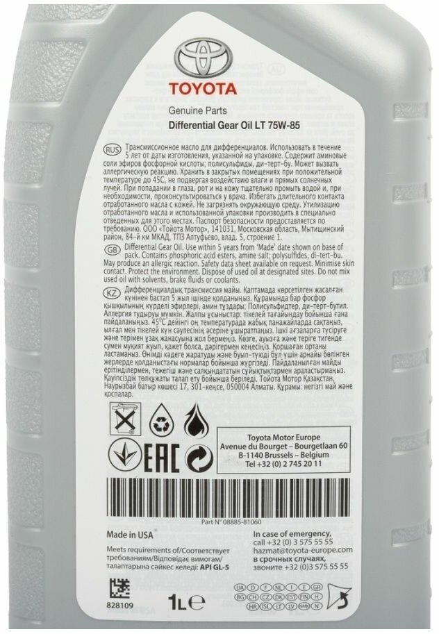 Трансмиссионное масло lt 75w-85 gl-5 1liter Toyota 0888581060 Toyota: 0888581060 GtriebeoilLT75W851л