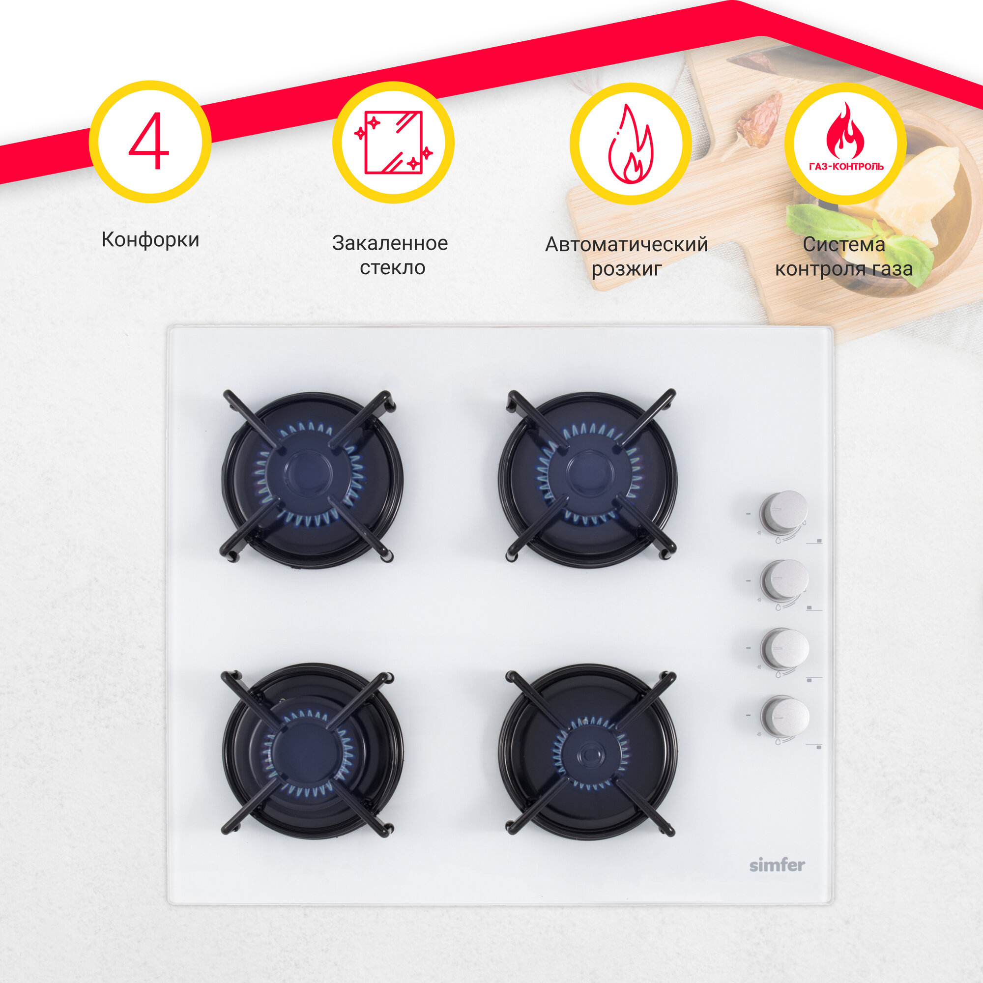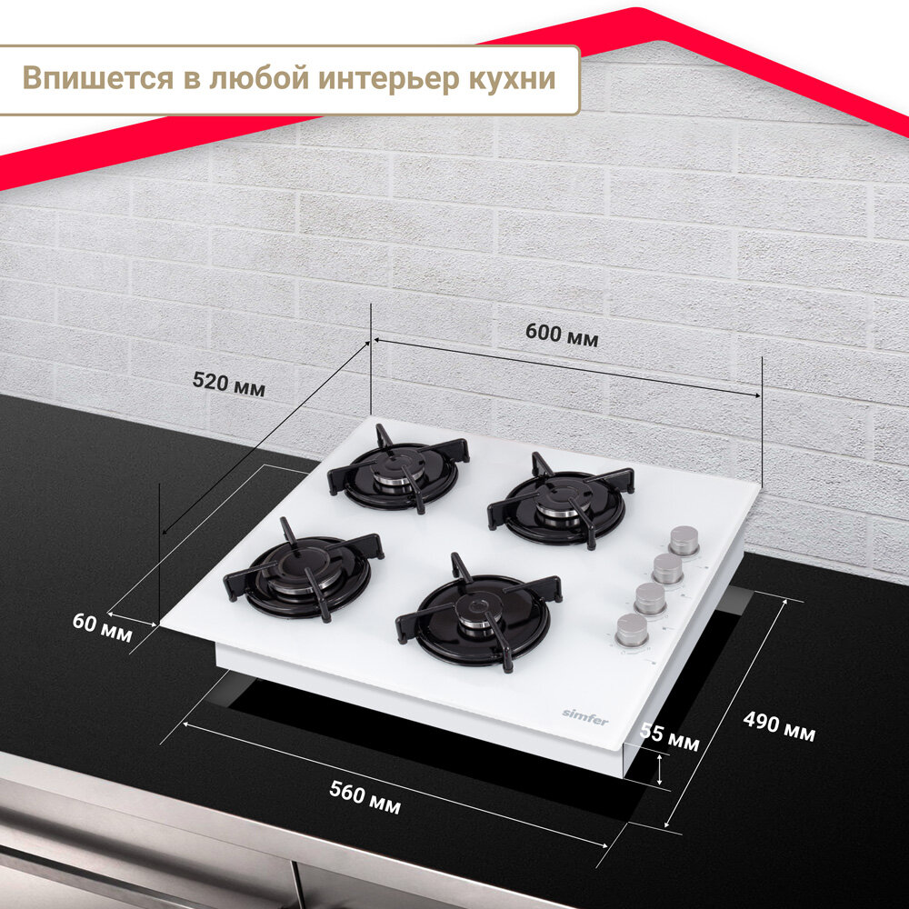 Газовая варочная панель Simfer H60K40C000 (газ-контроль, газ на стекле) интересное: