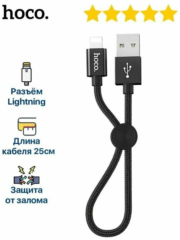 USB-кабель HOCO X35 0,25 метр для iPhone 5/6 черный