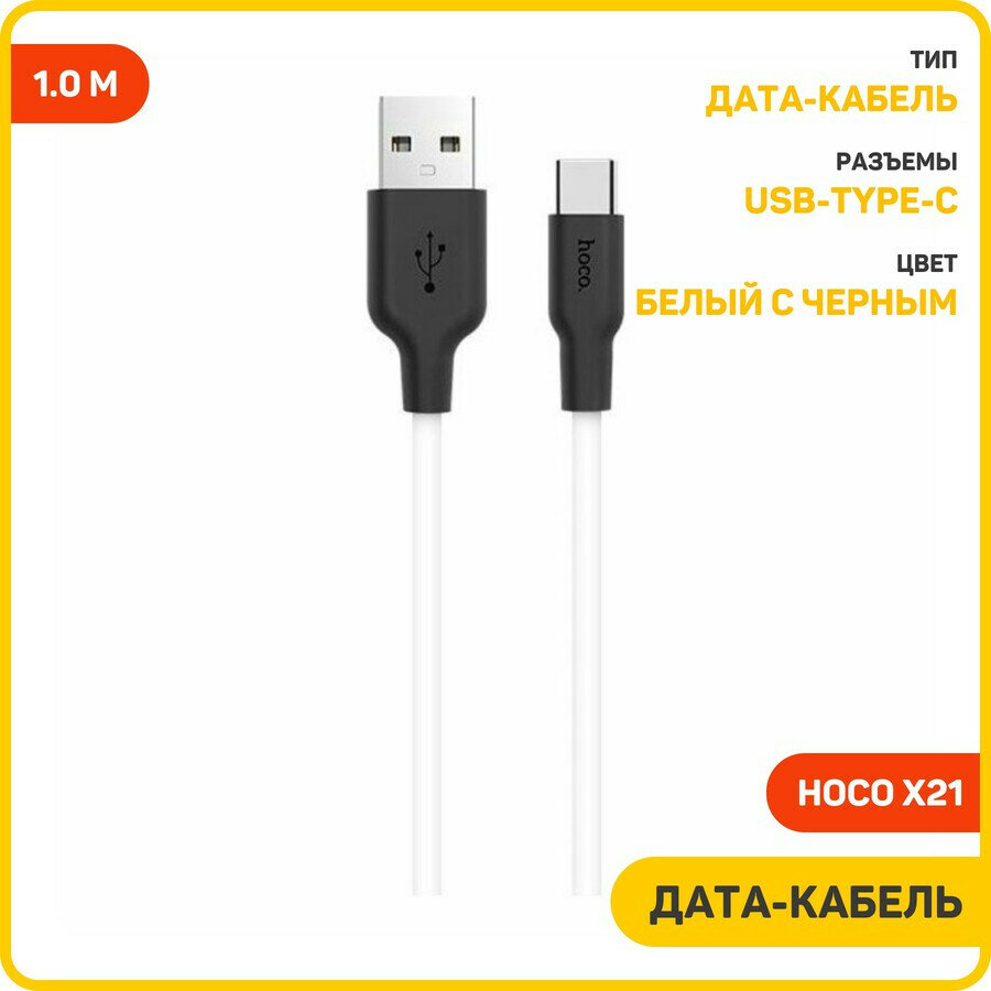 Кабель HOCO USB X21 Silicone Type-C, 1м, силикон (белый с черным)