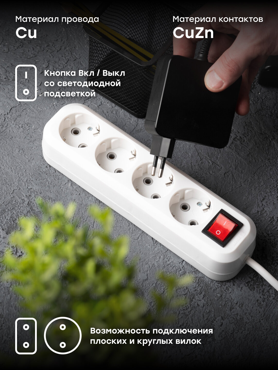 | Функции | заземление, выключатель на корпусе, световая индикация |
