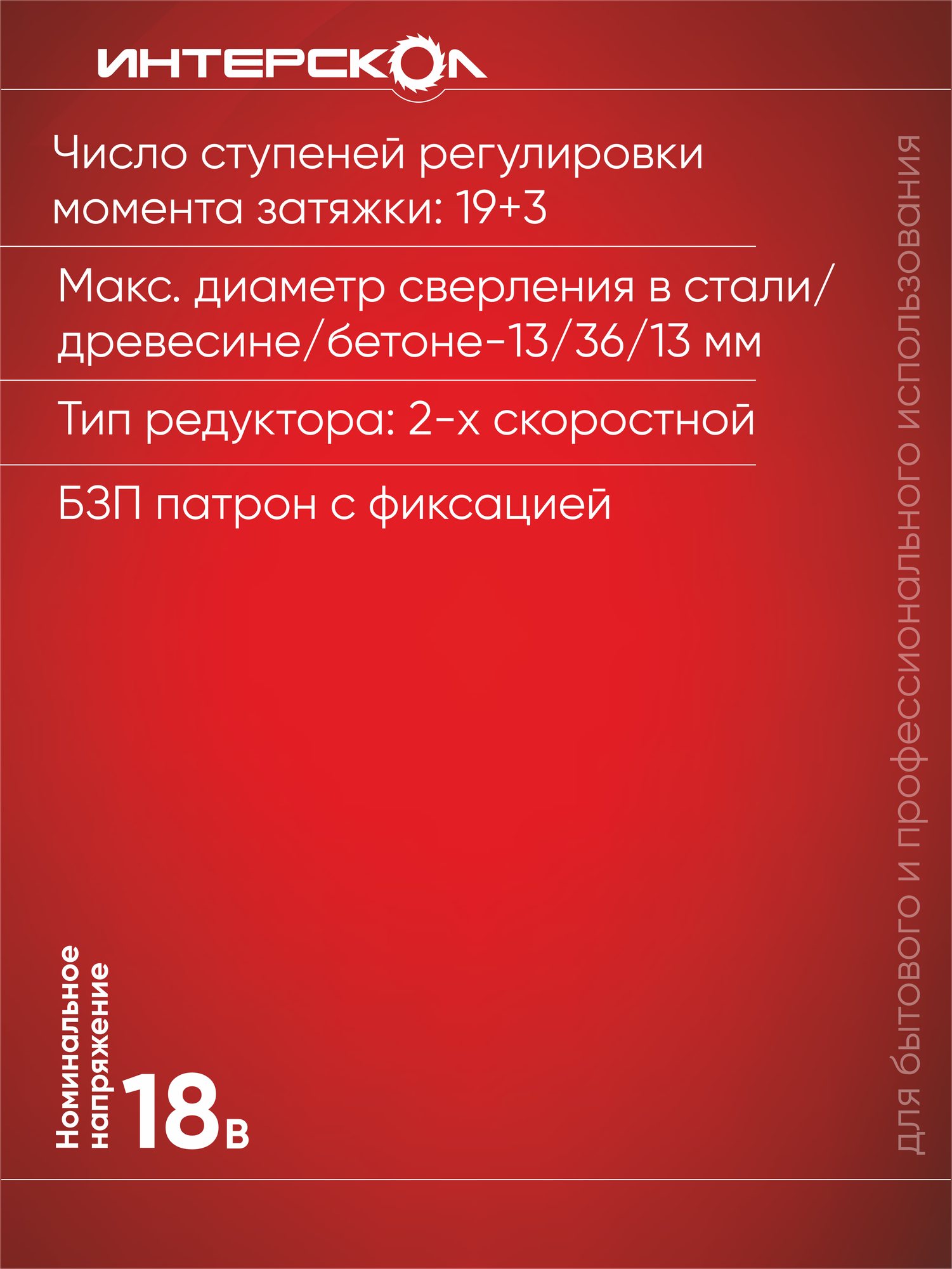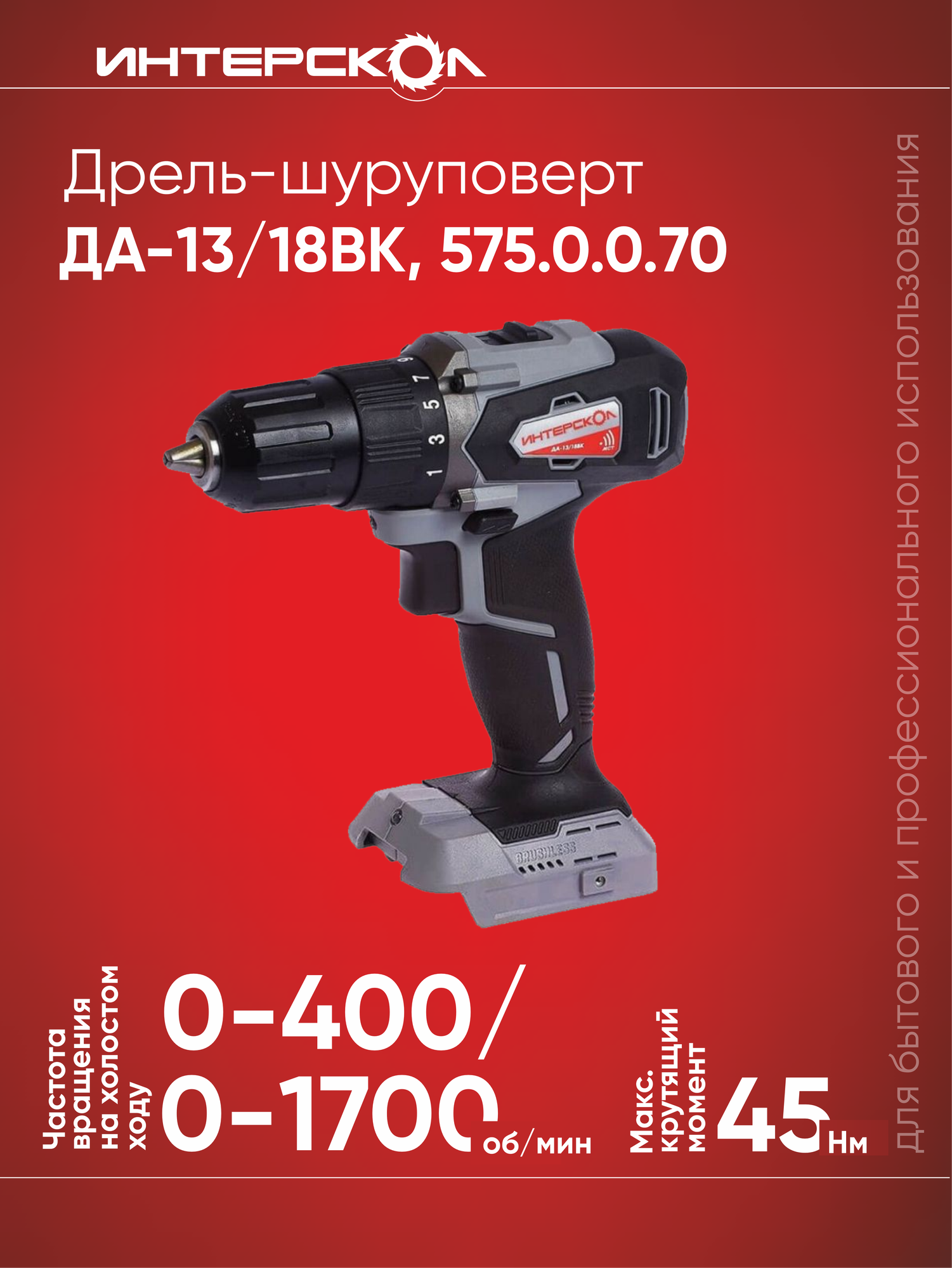 СохранитьШуруповерт Интерскол ДА-13/18В АПИ (без акк., ЗУ, кейс) (575.0.0.70) интересное: