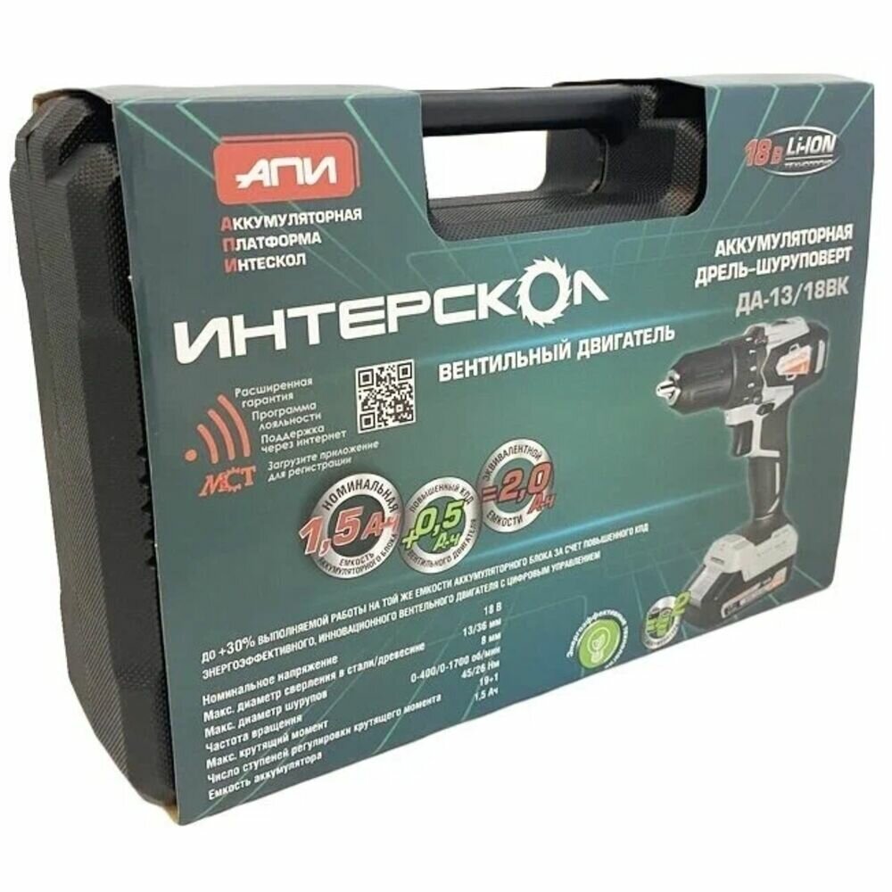 Профессиональная дрель-шуруповерт Интерскол ДА-13/18ВК (кейс, без аккум., ЗУ)