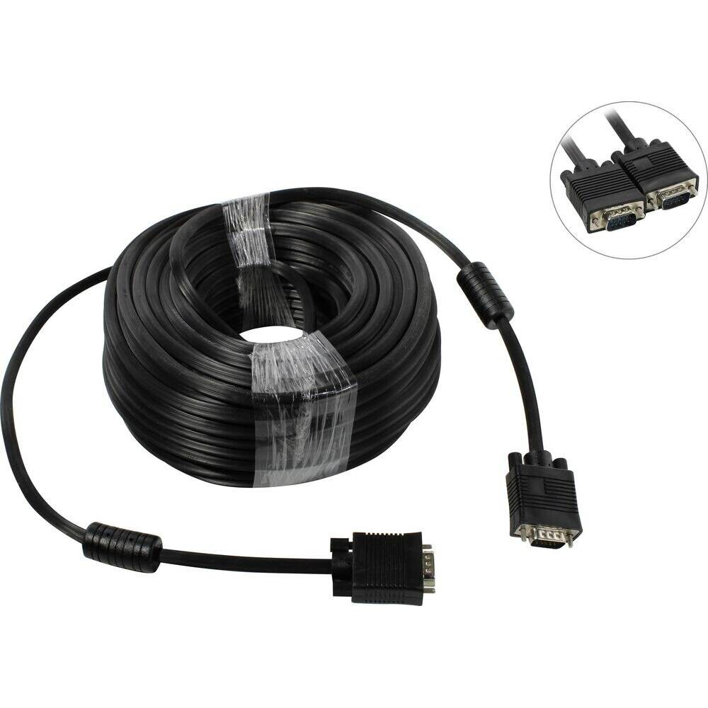 Gembird/Cablexpert CC-PPVGA-30M-B, Кабель VGA Premium , 15M/15M, 30м, черный, тройной экран, феррит.кольца