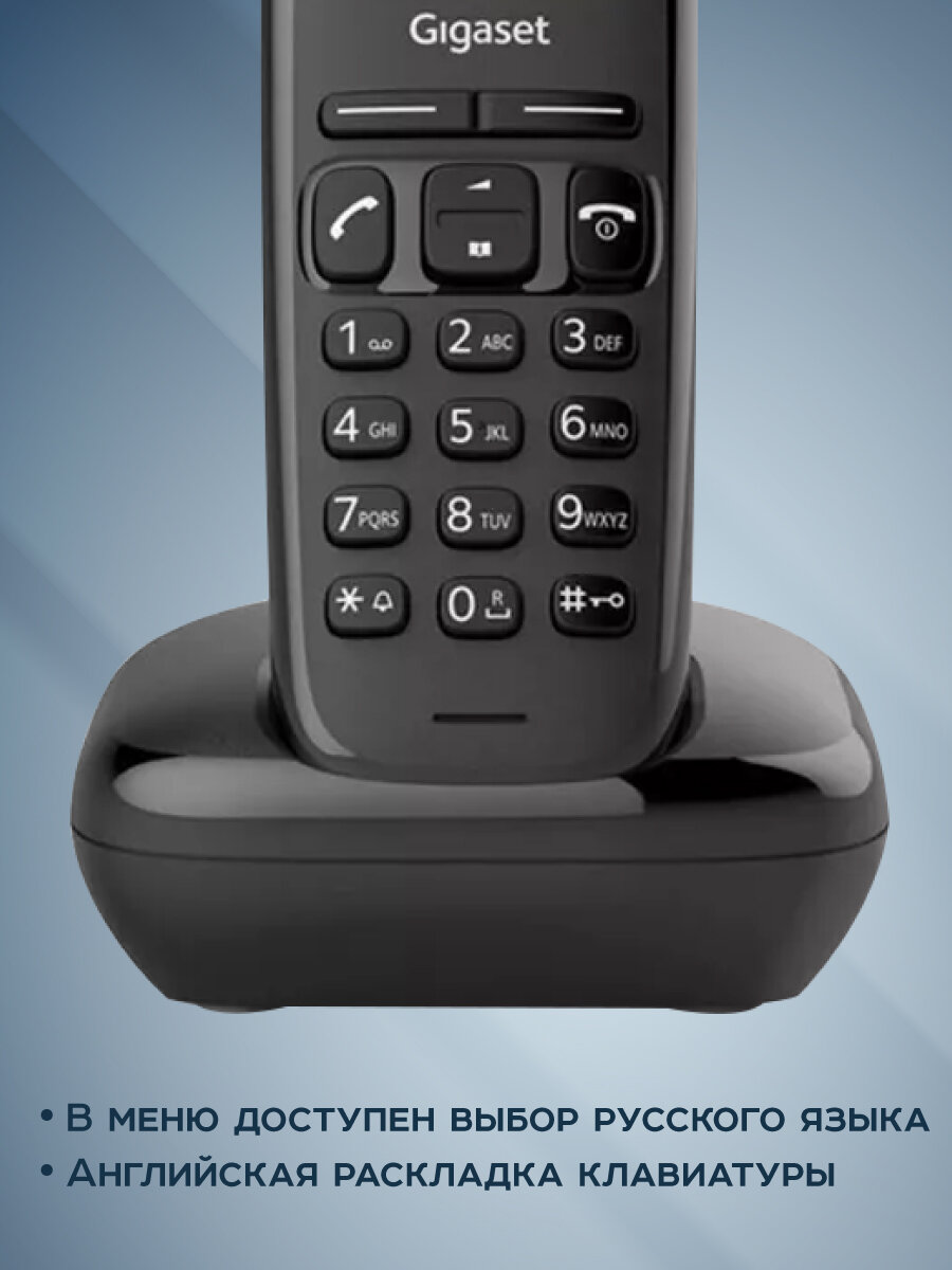 Радиотелефон GIGASET A170, память 50 номеров, АОН, повтор, часы, черный, S30852H2802S301