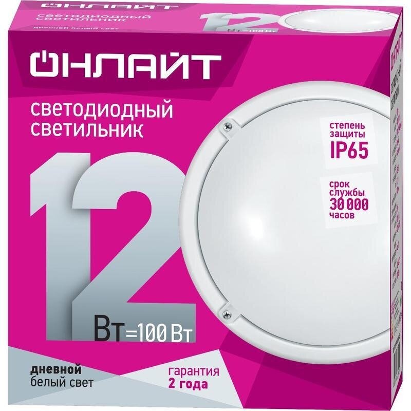 Светильник онлайт 61 194 OBL-R1-12-6.5K-WH-IP65-LED