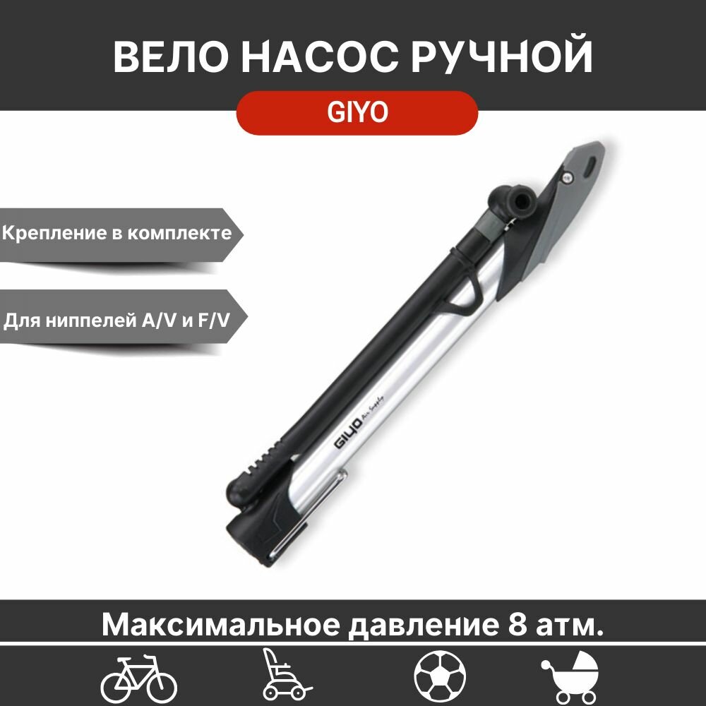 Насос велосипедный GIYO GM-07 ручной, алюминий, универс. головка, до 140PSI, с манометром