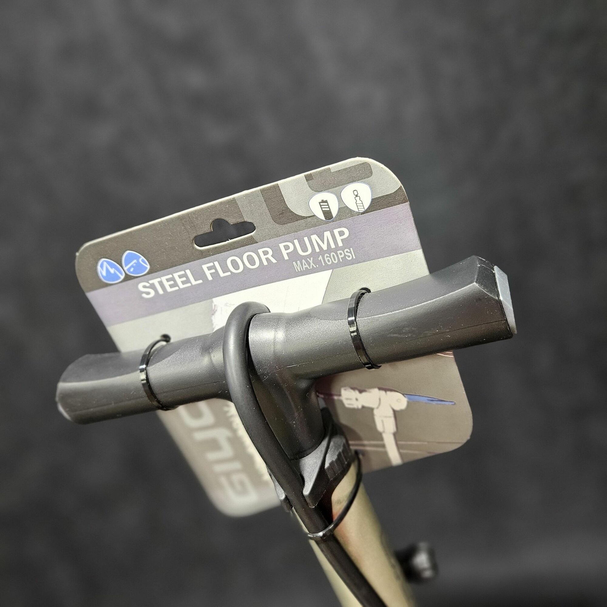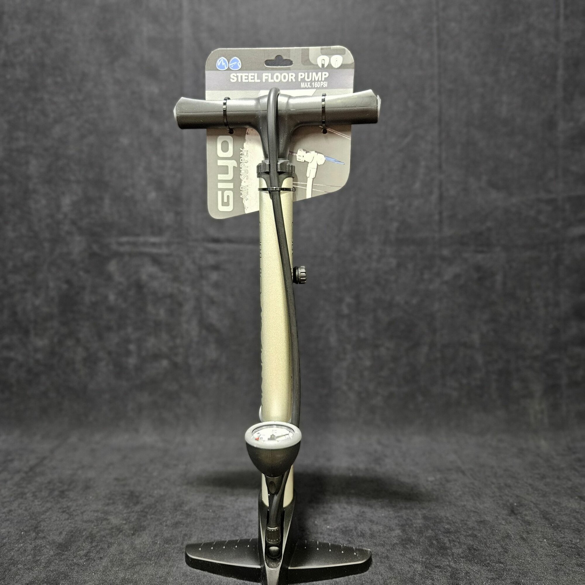 Насос для велосипеда GIYO GF35P напольный стальной, 11 атм/160 psi, манометр, “авто/вело” ниппель