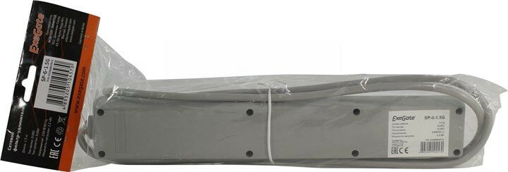 Сетевой фильтр ExeGate EX266865RUS SP-6-1.5G (6 розеток, 1.5м, евровилка, светло-серый)
